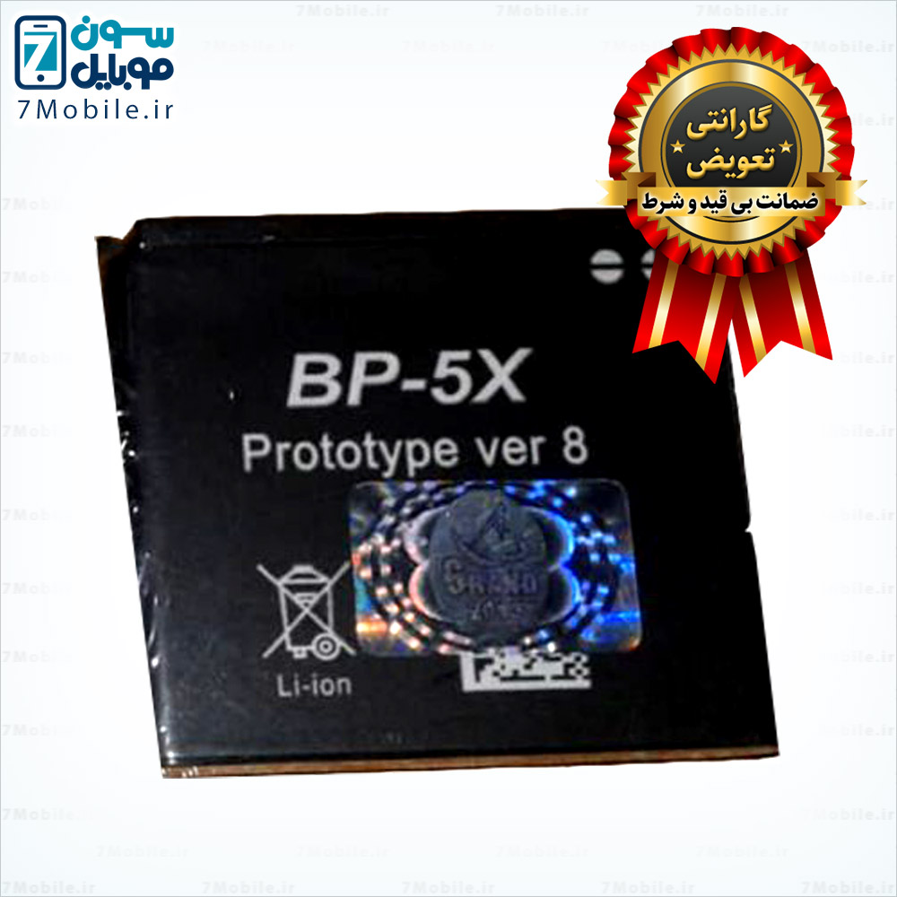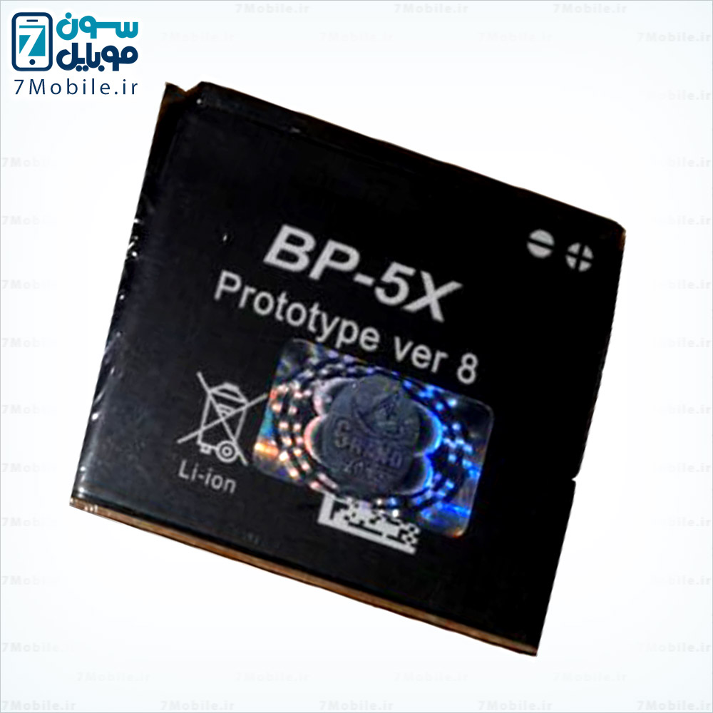 باطری نوکیا BP5X با ظرفیت 600 میلی آمپری از نوع Li-ion با ولتاژ 3.7 ولت می باشد که دارای گارانتی تعویض نیز است. این باطری با گوشی های 8800- 8860 -8801 سازگار می باشد. این باطری با مدل هایی از گوشی نوکیا که باطری BL5X و BP6X و BP5X می خورد سازگار است.