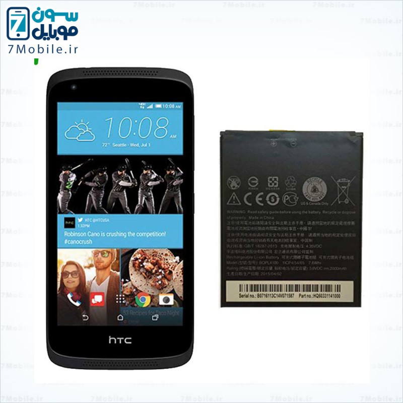 باطری اصلی گوشی HTC desire 526 که مدل آن BOPM3100 و BOPL4100 می باشد. این باطری با ظرفیت 2000 میلی آمپری از نوع Li-ion با ولتاژ 3.8 ولت می باشد که دارای گارانتی تعویض نیز است.