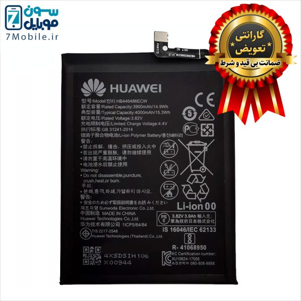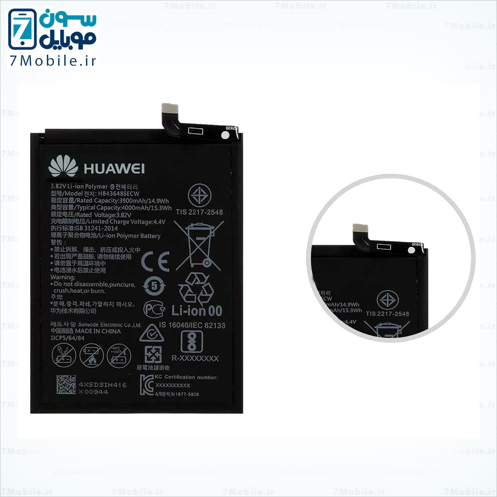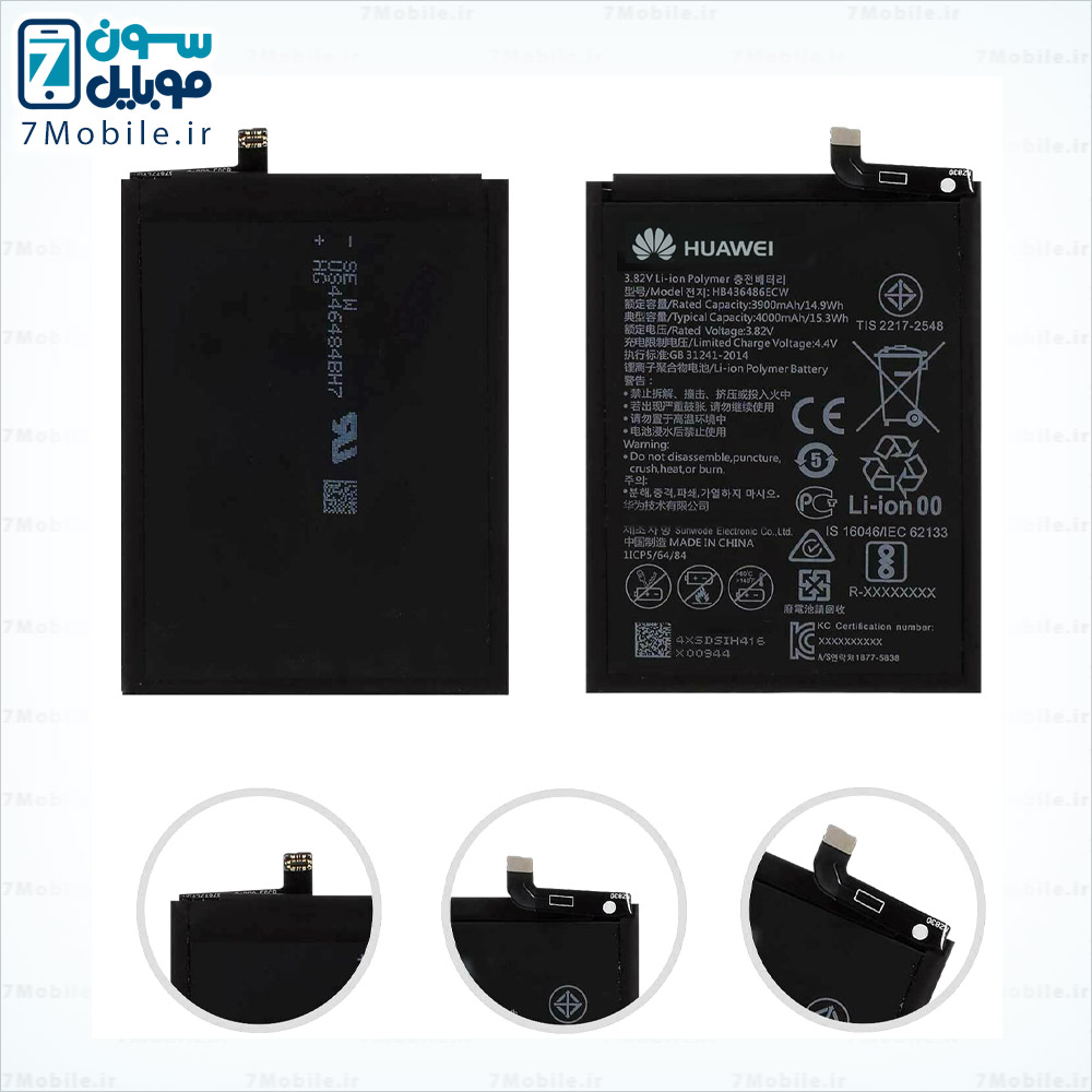 باطری اصلی هواوی Huawei Mate 20 که مدل آن HB446486ECW و HB436486ECW می باشد. این باطری با ظرفیت 4000 میلی آمپر ساعت از نوع باتري داخلي لیتیوم پولیمری Li-po با ولتاژ 3.82V ولت می باشد که دارای گارانتی تعویض نیز است.