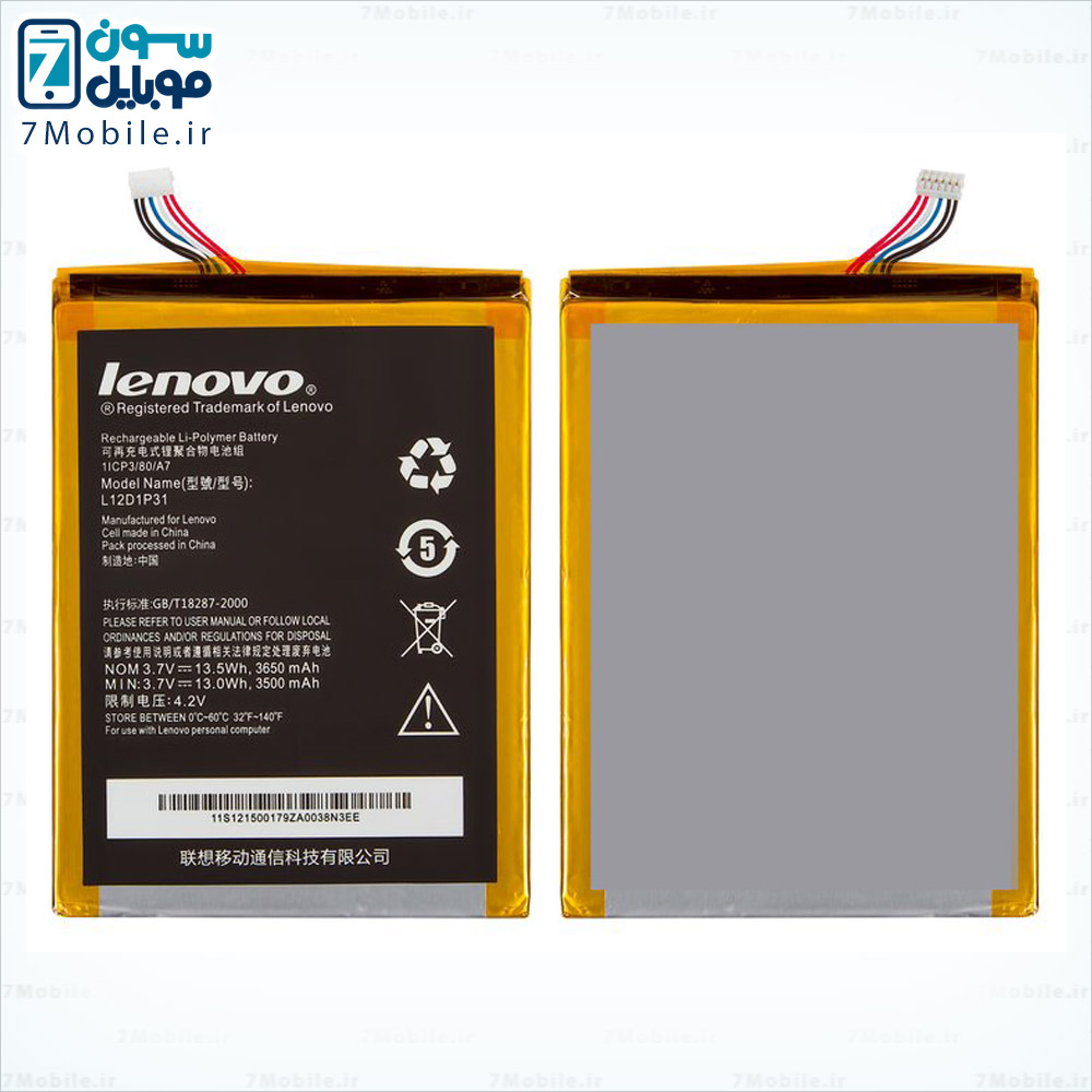 باطری اصلی تبلت لنوو Lenovo A3000 با 6 ماه گارانتی  که مدل آن L12D1P31 می باشد. این باطری با ظرفیت 3650 میلی آمپری از نوع Li-ion با ولتاژ 3.8 ولت می باشد که دارای گارانتی تعویض نیز است.