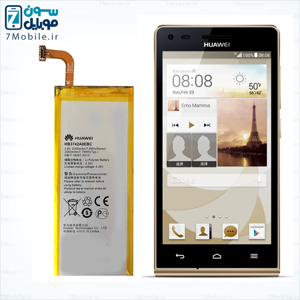 باتری اصلی گوشی HUAWEI G6 که مدل آن HB3742A0EBC می باشد. این باتری با ظرفیت 2000 میلی آمپری از نوع Li-ion با ولتاژ 3.8 ولت می باشد که دارای گارانتی تعویض نیز است.