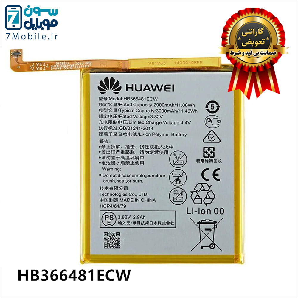 باتری اصلی هواوی Huawei Honor 7 Lite با ۶ ماه گارانتی تعویض و باد‌‌کردگی و با کد باتری HB366481ECW که ظرفیت 3000 میلی آمپری دارد و از نوع لیتیوم پولیمری (Li-po) با ولتاژ 3.8 می‌باشد. توجه داشته باشید این مدل باتری هواوی جز باتری های داخلی و جدانشدنی است که توسط کاربر قابل تعویض نمی باشد و برای تعویض آن باید به مراکز معتبر مراجعه کنید.