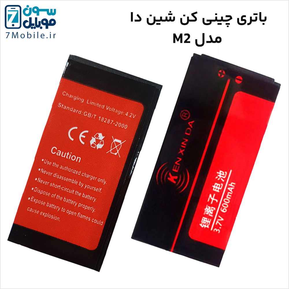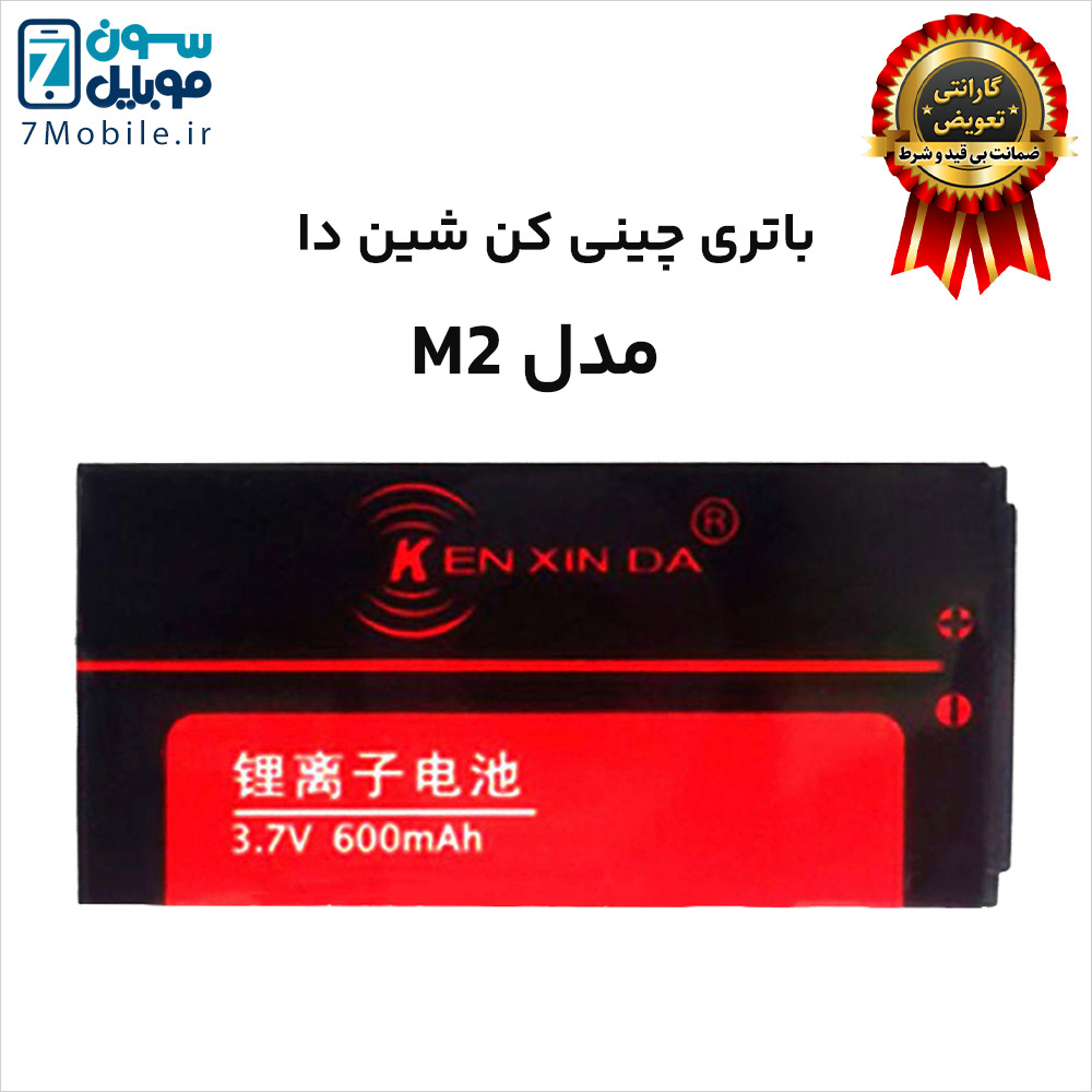 باتری اصلی گوشی چینی کن شین دا (Ken Xin Da) مدل M2 با ظرفیت 600 میلی آمپر و ولتاژ 3.7 طراحی شده توسط کمپانی چینی کن شین دا (KenXinDa ) است و قابل تعویض توسط کاربر می‌باشد. این مدل باتری  برای گوشی‌های چینی مدل‌های M2، M1 ،M3 ،M5 ،M6 ،M7 ،M8 ،S2 ،Ken Xin Da Mini مناسب می‌باشد.