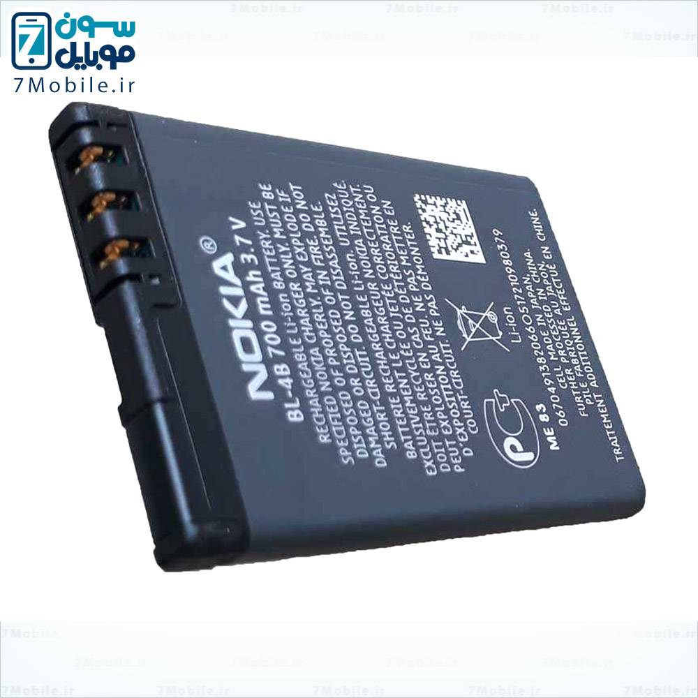 باتری اصلی نوکیا nokia 7510 Supernova که مدل آن BL4B می باشد و ظرفیت 700 میلی آمپری از نوع Li-ion با ولتاژ 3.7 ولت دارد. این باتری دارای 6 ماه گارانتی تعویض و بادکردگی نیز است.