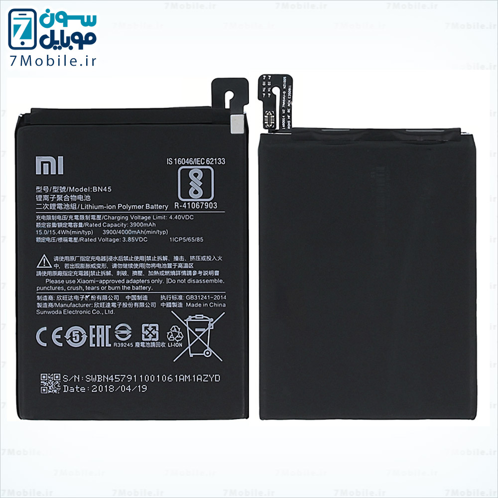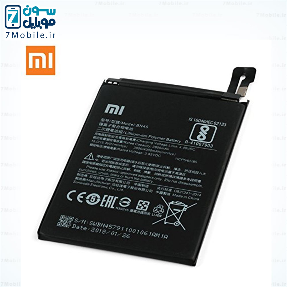 باتری اصلی شیائومی Xiaomi Redmi Note 5 Pro که مدل آن BN45 است و ظرفیت 3900 میلی آمپری دارد و از نوع لیتیوم پلیمر داخلی با ولتاژ 3.8 ولت می باشد. این مدل باتری شیائومی دارای گارانتی تعویض و بادکردگی به مدت 6 ماه است. توجه داشته باشید این مدل باتری شیائومی جز باتری های داخلی و جدانشدنی است که توسط کاربر قابل تعویض نمی باشد و برای تعویض آن باید به مراکز معتبر مراجعه کنید.