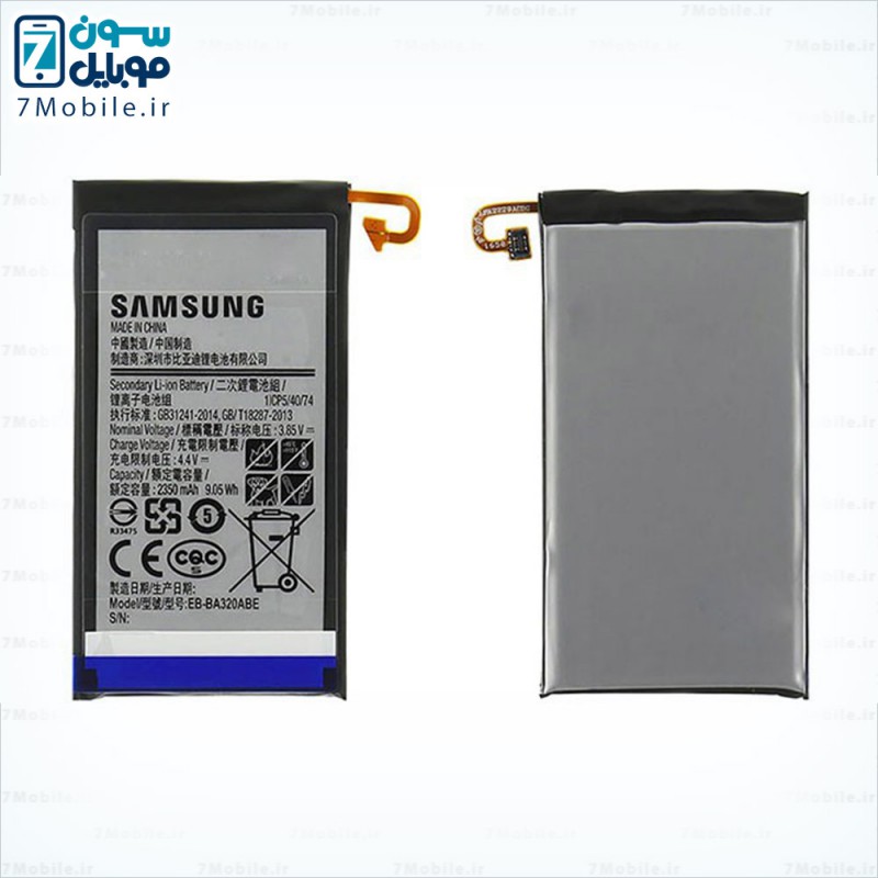 باطری اصلی سامسونگ Samsung Galaxy A3 2017 با 6 ماه گارانتی و کد باتری EB-BA320ABE که ظرفیت 2350 میلی آمپر دارد و از نوع لیتیوم یونی با ولتاژ 3.8 ولت می باشد.