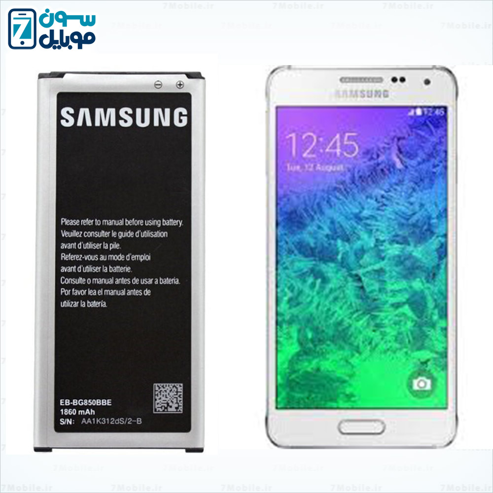 باتری اصلی گوشی  Samsung Galaxy Alpha  که مدل آن EB-BG850BBE می باشد. این باطری با ظرفیت 1860 میلی آمپری از نوع Li-ion با ولتاژ 3.8 ولت می باشد که دارای گارانتی تعویض نیز است.