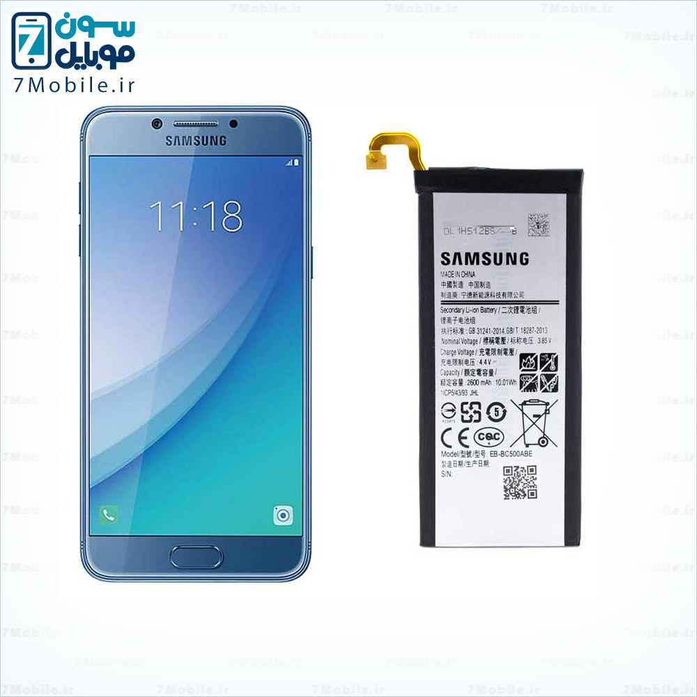 باتری اصلی سامسونگ Samsung Galaxy C5 Pro با 6 ماه گارانتی تعویض و با کد باتری EB-BC500ABE و با ظرفیت 2600 میلی آمپر و ولتاژ 3.8 از نوع Li-ion لیتیوم یون و جدا نشدنی می باشد.
