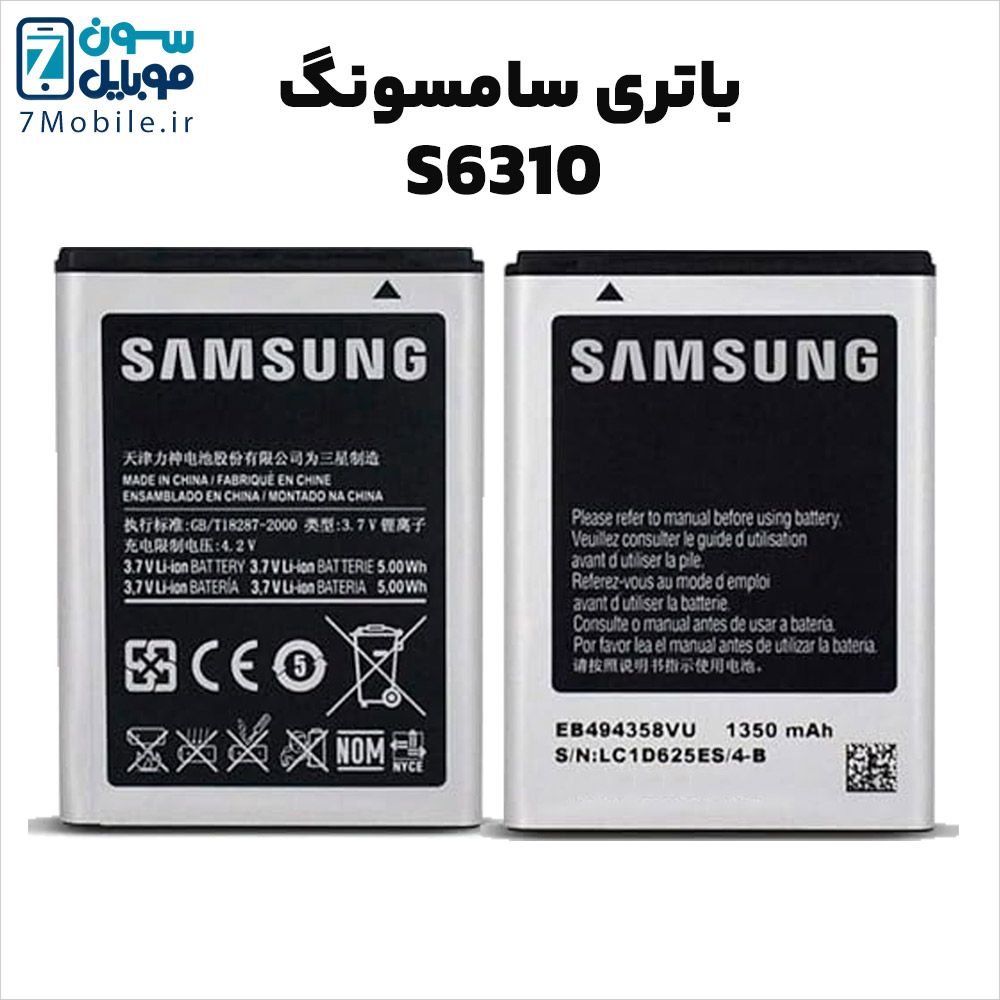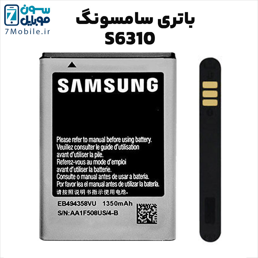 باطری اصلی سامسونگ Samsung Galaxy Young DUOS S6310 با ظرفیت 1350 میلی آمپری و کد EB494358VU و EB464358VU و EB-L1P3DVU که از نوع Li-ion و با ولتاژ 3.7 ولت می باشد که دارای گارانتی تعویض نیز است.