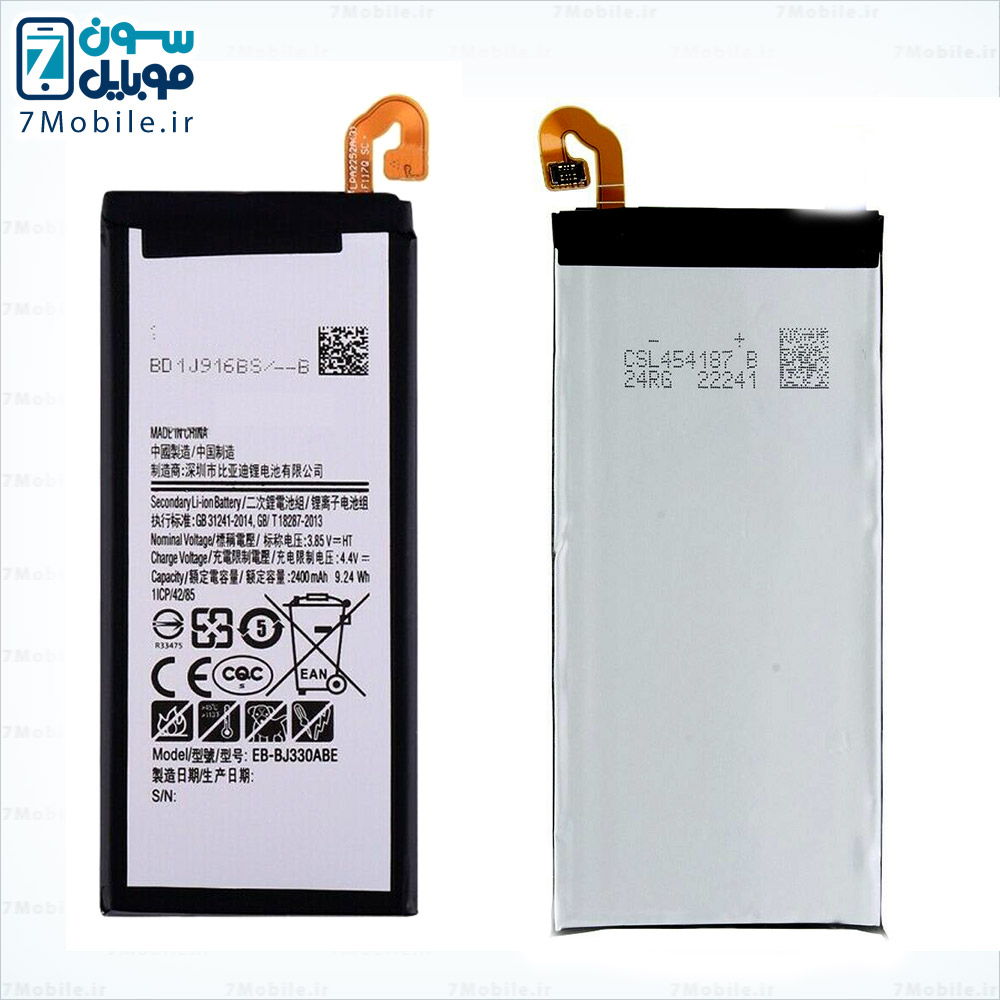 باطری اصلی Samsung Galaxy J3 Pro 2017 با 6 ماه گارانتی که مدل آن EB-BJ330ABE می باشد. این باطری با ظرفیت 2400 میلی آمپری از نوع Li-ion با ولتاژ 3.8 ولت می باشد که دارای گارانتی تعویض نیز است.