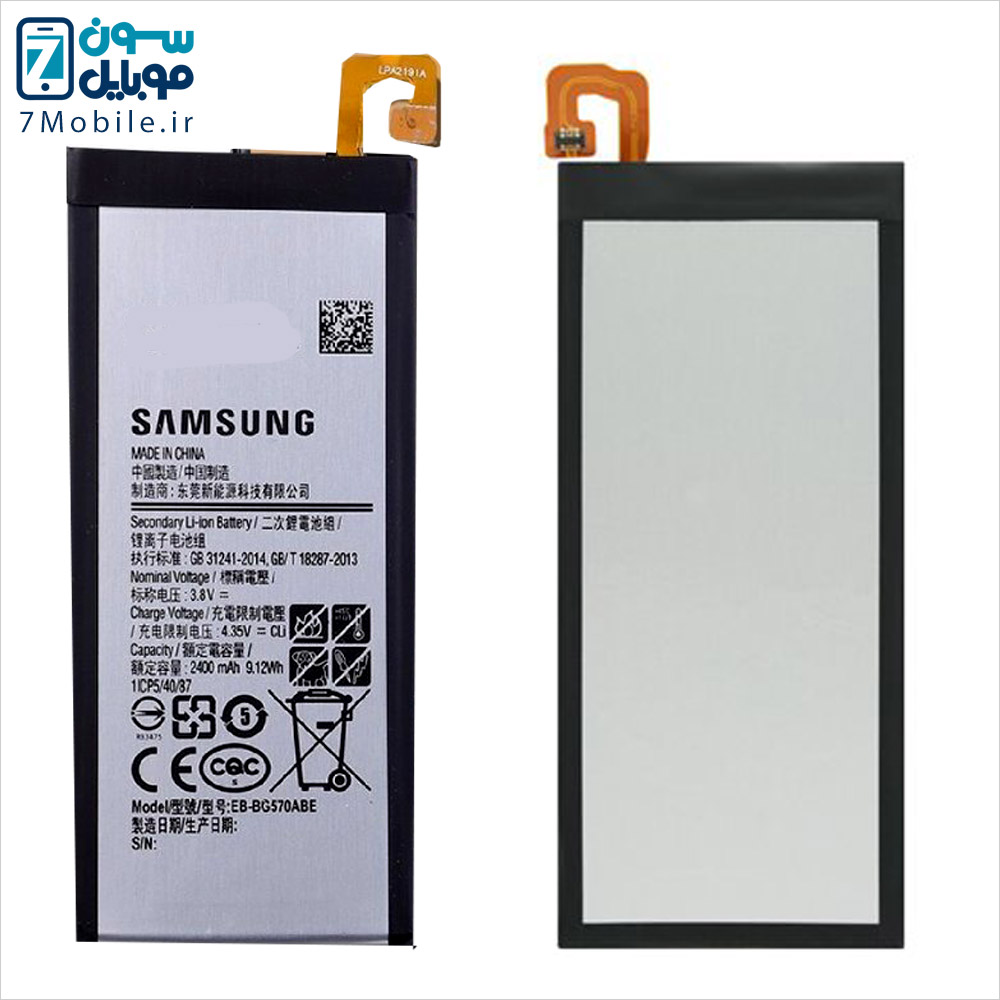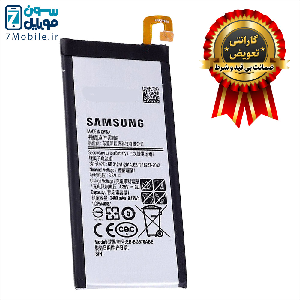باطری اصلی Samsung Galaxy On5 2016 با 6 ماه گارانتی که مدل آن EB-BG570ABE می باشد. این باطری با ظرفیت 2400 میلی آمپری از نوع Li-ion با ولتاژ 3.8 ولت می باشد که دارای گارانتی تعویض نیز است.