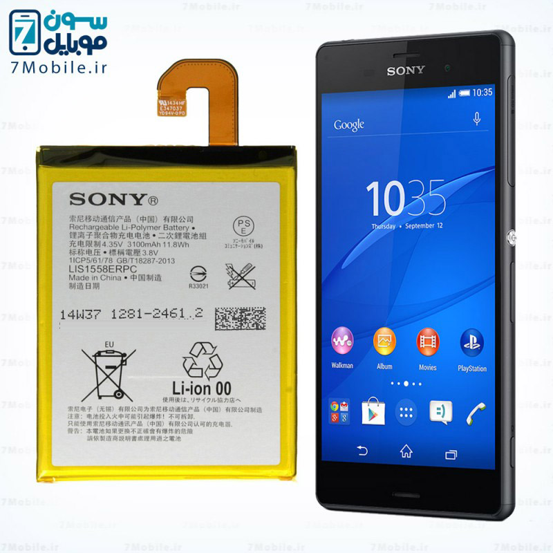 باطری اصلی سونی Sony Xperia Z3 که مدل آن LIS1558ERPC می باشد. این باطری با ظرفیت 3100 میلی آمپری از نوع Li-ion با ولتاژ 3.7 ولت می باشد که دارای گارانتی تعویض نیز است.