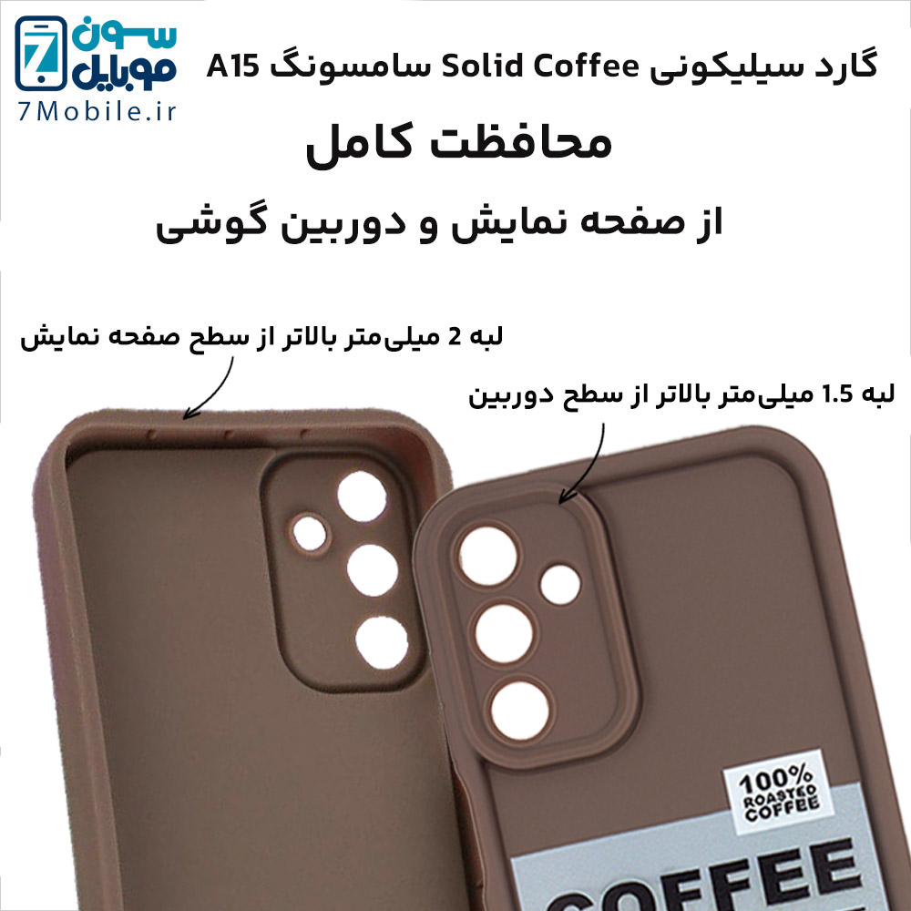 به جرات می‌توان گفت گارد مدل سولید مدل Solid Coffee با زیبایی خاص، محافظت چند برابری از دوربین و لبه‌های گوشی، مقاومت بالا در برابر ضربه، خراش، اثر انگشت، بسیار خوش دست، سیلیکون محکم و انعطاف پذیر، یکی از شیک‌ترین و در عین حال محکم‌ترین انواع قاب برای گوشی سامسونگ A15 است.